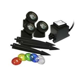 Power Beam 20W 3-Set Pond & Garden Lights w/ Stakes, Lenses & Transformer